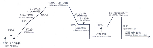 3、推介的滌/棉染色工藝:適合于對雙氧水較敏感的分散染料染色
