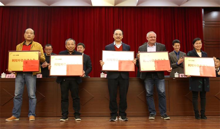 阮加春副董事長領(lǐng)取“利用外資先進企業(yè)”獎項