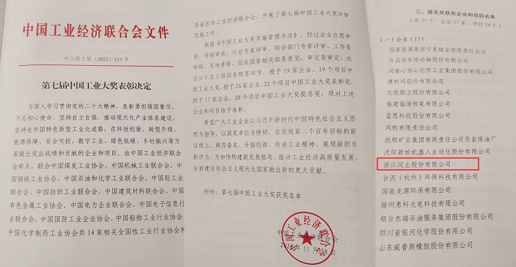 中國工業(yè)大獎是經國務院批準設立的我國工業(yè)領域最高獎項,由中國工業(yè)經濟聯(lián)合會牽頭,被譽為中國工業(yè)的“奧斯卡”,大獎包括“中國工業(yè)大獎”“中國工業(yè)大獎表彰獎”和“中國工業(yè)大獎提名獎”三個層次的獎項。歷屆獲獎企業(yè)和項目都代表了國內工業(yè)發(fā)展的最高水平,在引領行業(yè)發(fā)展上起著榜樣示范作用。此次獲得入選中國工業(yè)大獎,是對閏土股份堅持創(chuàng)新驅動,走新型工業(yè)化道路,引領行業(yè)高質量發(fā)展的充分肯定。