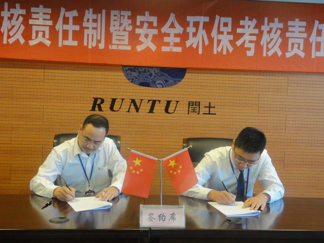 ——閏土股份舉行2015年度經(jīng)濟(jì)考核責(zé)任制暨安全環(huán)??己素?zé)任書(shū)簽訂儀式