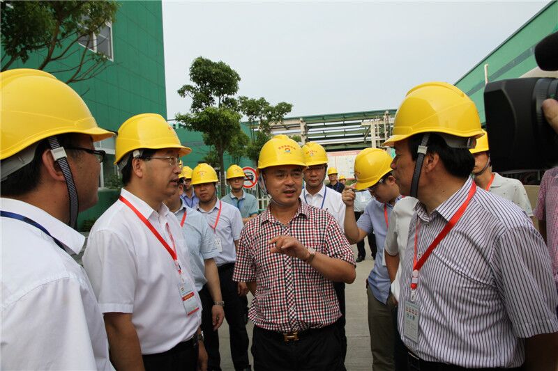 8月17日,由紹興市委書記陳金彪(左三)帶隊(duì)的督查組到閏土生態(tài)工業(yè)園內(nèi)的閏土新材料公司督查安全生產(chǎn)工作。陳金彪書記一行深入生產(chǎn)一線,了解企業(yè)?;返膬?chǔ)存、使用情況,詳細(xì)詢問了?;返奈锢砘瘜W(xué)特征、緊急處置辦法和應(yīng)急預(yù)案,并聽取了企業(yè)負(fù)責(zé)人關(guān)于生產(chǎn)工藝流程的介紹。陳書記對(duì)閏土新材料公司的安全生產(chǎn)和?;饭芾砉ぷ鞅硎菊J(rèn)可,并囑咐企業(yè)一定要時(shí)刻緊繃安全生產(chǎn)這根弦,企業(yè)在抓效益的同時(shí),更要抓好安全、環(huán)保工作。紹興市副市長楊文孝、紹興市上虞區(qū)區(qū)委書記孫云耀、紹興市上虞區(qū)區(qū)委常委、杭州灣上虞經(jīng)濟(jì)技術(shù)開發(fā)區(qū)管委會(huì)主任胡文煒、紹興市上虞區(qū)副區(qū)長王永表等領(lǐng)導(dǎo),閏土股份副董事長阮加春、閏土股份副總經(jīng)理阮光棟、閏土新材料公司總經(jīng)理周杰文等一起陪同。