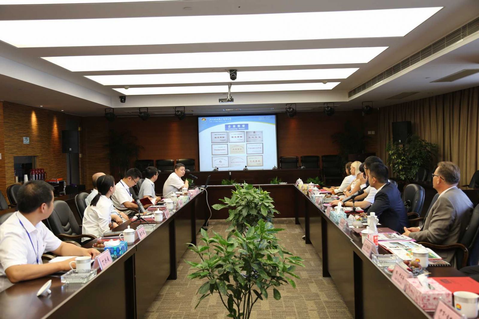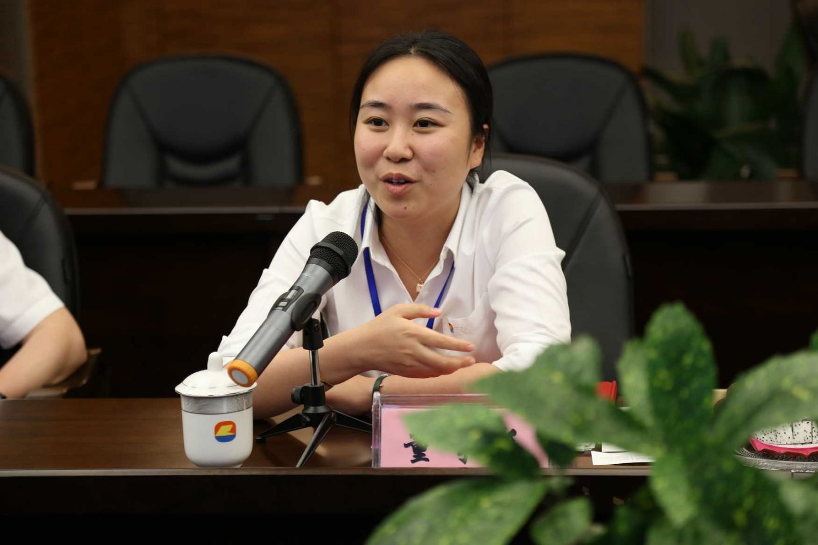 阮靜波董事長在會上與來訪客人互動交流