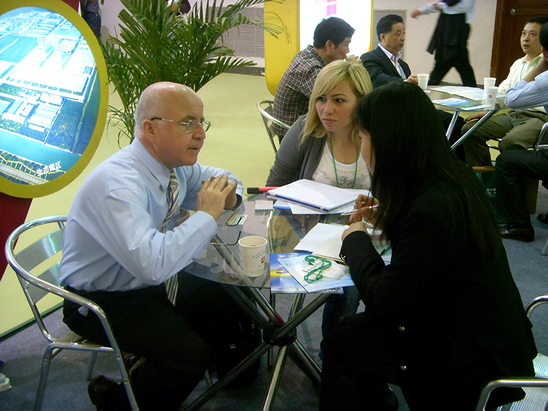 展會(huì)期間,公司銷售人員和外商在洽談中。