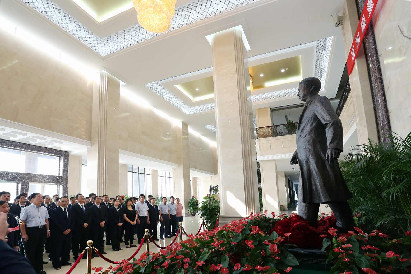 阮加根董事長(zhǎng)銅像揭幕儀式在閏土生態(tài)工業(yè)園科技大樓內(nèi)舉行